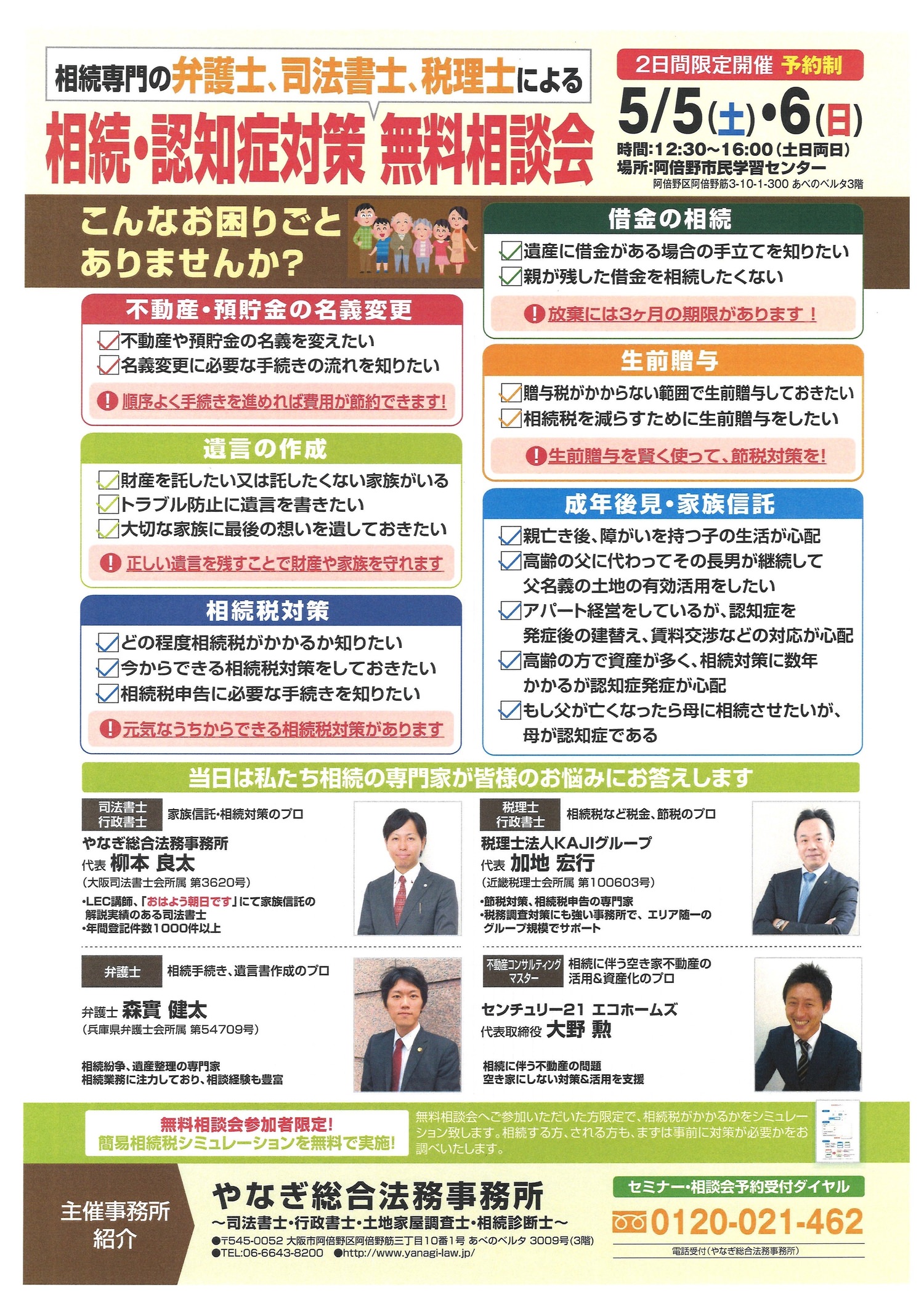 弁護士・司法書士・税理士がお伝えする”相続対策・認知症対策セミナー